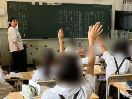 3年生は理科でまとめのテストを返却していました。先生から模範解答を聞きながら、復習も兼ねて学習の振り返りをしていました。同じ問題は次に間違わないように取り組むことができました。