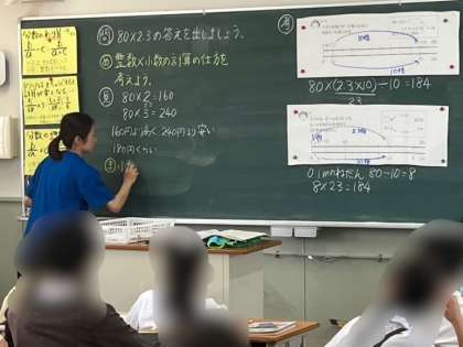 5年生は算数科「整数かける小数の計算」を学習しました。小数を整数にしてから計算することがポイントです。計算の方法についてしっかり理解することができました。