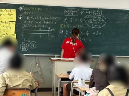 6年生は算数科の学習でした。問題文を読んで、どんな式になるのかを考えます。整数だけなら分かる問題も、分数が入ることによって難易度が上がります。惑わされることなく解答できるように頑張りました。