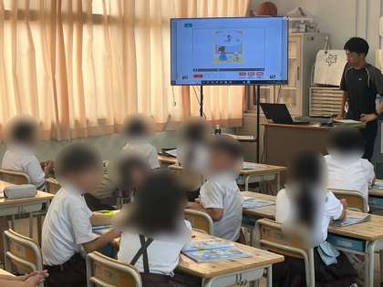 4年生は英語「Let's play cards」の学習で「How's the weather ?」のチャンツに挑戦しました。チャンツとは単語や文章をリズムに合わせて発音する学習方法です。最初は少し戸惑っていましたが、慣れてくると大きな声で楽しんで取り組んでいました。