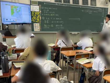 6年生は社会科で歴史を学習しています。今日は縄文時代から弥生時代の生活について知識を深めました。住居や食事など当時の様子がよく分かるように、デジタルコンテンツなども活用しながら授業が進められました。