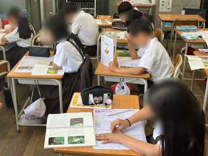 3年生は国語科「自然のかくし絵」のまとめのテストをしました。教科書の指定されたページを読んで各問題に解答していきます。これまで学習した内容を思い出しながら、一所懸命に書き込んでいました。
