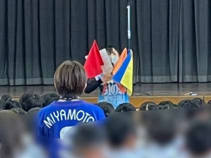 暑い日が多くなってきました。暑さ指数の目安として、本日から運動場の朝会台にカラーフラッグが立てられます。外で遊ぶときはフラッグの色を確認して、こまめに水分補給をするなど、体調の管理に気をつけて元気に過ごしてほしいと思います。