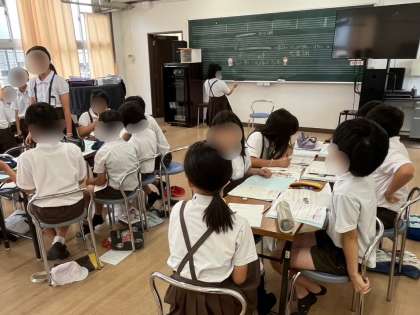 4年生は音楽科「まきばの朝」を学習しました。楽譜に出てくる記号の名前や意味、歌詞のリズムが七五調になっていることを確認しました。自分たちで考えたリズムで手拍子を打ち、リズムアンサンブルも楽しむことができました。