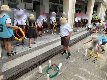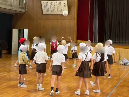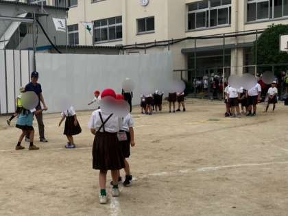 伝法小学校では、異学年のふれあいや、体つくり活動推進の取組として「デンリンピック」を開催しています。開会式では、児童会の児童から「はじめの言葉」や「移動の仕方について」の説明がありました。開会式が終わると、すぐに移動して活動を始めていました。