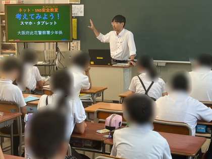 6年生は3時間目『非行防止教室』の出前授業がありました。此花警察署から2名の方に来ていただいて勉強しました。テーマは『スマホの危険性』について実際に起こった事例を通して、スマホやタブレット利用に関する様々な問題について学ぶことができました。