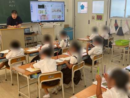 3年生は理科で「植物をそだてよう」の学習をしました。学習園に植えてある「ほうせんか」を観察しに行く前に、教室で見るポイント等を確認していました。