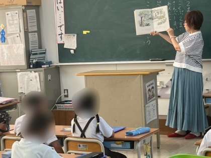 今朝は、読み聞かせボランティアの皆さんにお越しいただいて、1年生と2年生に絵本の読み聞かせをしていただきました。とても上手に読んでくださるので、子どもたちは絵本の世界に入り込んで聞き入っていました。