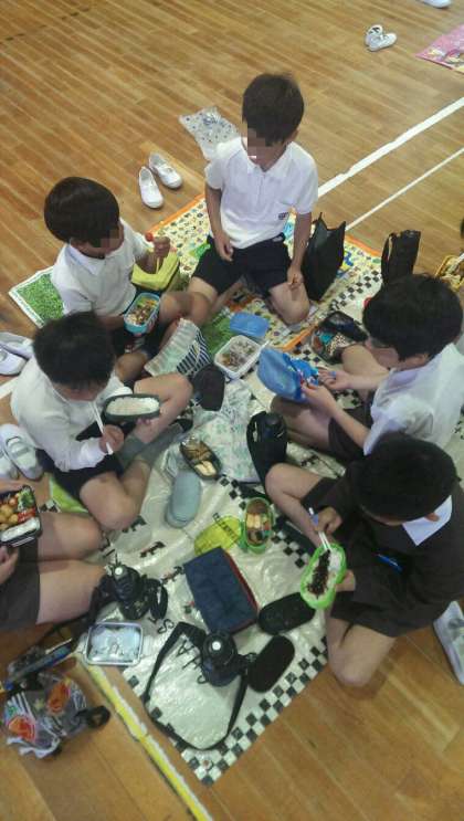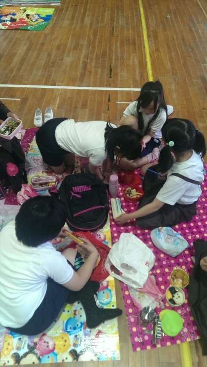 遠足は延期になりましたが、いつもと一味違った昼食で、皆楽しく食べていました。