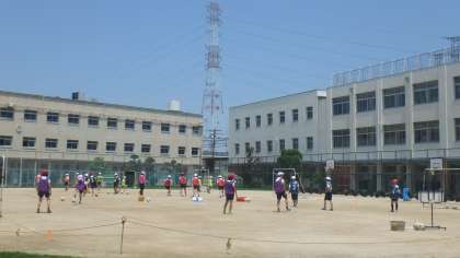 5月20日(金)4限目、6年生の体育の授業を訪れました。伝法小学校では『楽しく意欲的に取り組み、ともに高めあう子どもを育てる〜体育科学習を通して〜』を主題に、何度も研修会を開き、全員でより良い授業づくりに取り組んでいます。そして、さすが伝法の子どもたち、授業でも先生の指示に、チームで考え合ったり、整然と行動し練習に取り組んでいる姿が印象的です。