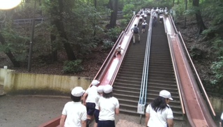 名物ジャンボ滑り台。途中少しお尻が浮くポイントがあるそうです。みんな何度も挑戦していました。