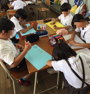 6日はでんでん子どもまつりに向けて、たてわり班で集まってお店の準備をしました。