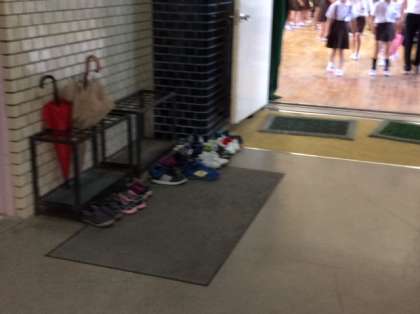 1学期もいよいよ終わり。終業式に向かう、講堂の入り口の靴。きれいにそろえられていた。とても、気持ちいいし、とても、うれしい。当たり前のことを当たり前にできることは大事だ。