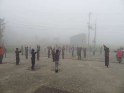 なかなか霧が深そうで、自然のモザイクがかかっています。日中はいい天気になるでしょう。ケガなくがんばってください!!