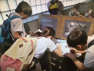 クラスごとに班活動をしながら見学し、戦時中のことについて学んだり、映画を鑑賞したりしました。