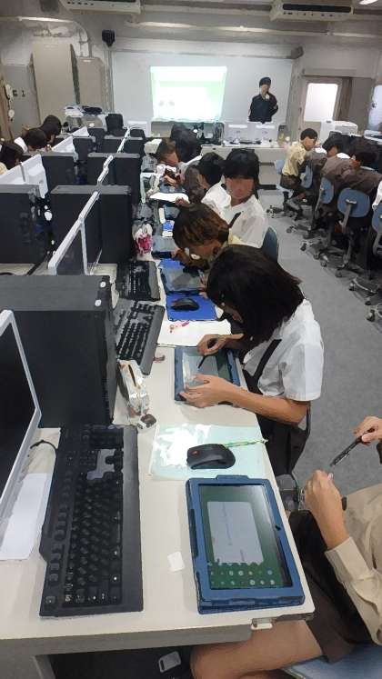 10月29日(土)、土曜日学習の3限目、4年1組はパソコン室でタブレットを使って学習しました。なんとなく、勝手にどんどんさわっていく人の方が上達が早いような、、? いやいや負けじと先生もICT教育指導、上達中です。