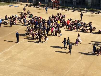 本日、土曜授業。3時間目に不審者侵入想定で避難訓練。その後、前回できなかった、校外グランドへの2次避難訓練。最後に保護者への引渡し訓練を実施。保護者の方々には「◯年◯組の名前、続柄」を伝えてもらい、担任がチェックして子どもたちを引き渡す訓練。保護者の方の協力でスムーズに引渡しが完了。ご協力ありがとうございました。