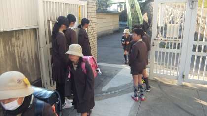 3月8日(水)、今週はあいさつ週間です。児童会の子どもたちも南門と北門に分かれて、一生けんめい朝のあいさつ運動に取り組んでいます。