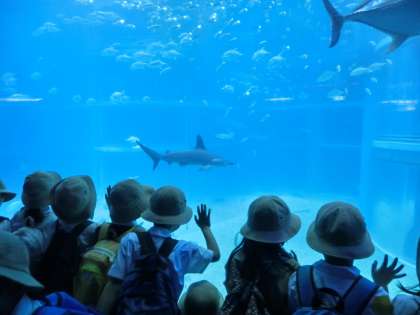 5月17日(水)今日は1年生と2年生で海遊館に遠足に行きました。いろいろな魚や生き物にたくさん出会って、子どもたちも興味深々満足したようです。見学の後は、天保山公園で仲良くお弁当を食べ、残りの時間をおもいっきり遊んですごしました。電車や海遊館の中など、たくさんの人たちの中での行動でしたが、団体行動、電車の中や見学の態度・マナーもよく、子どもたち一人ひとりの頑張りや成長がとても感じられる遠足になりました。