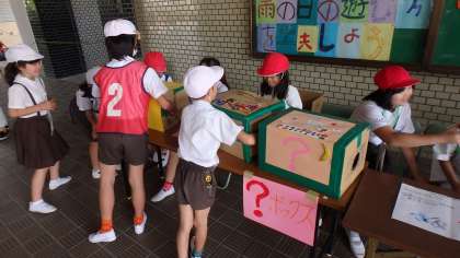 でんでんこどもまつりは、前半から後半へと、お店めぐり班とお店番班が入れ替わりました。大盛況です。