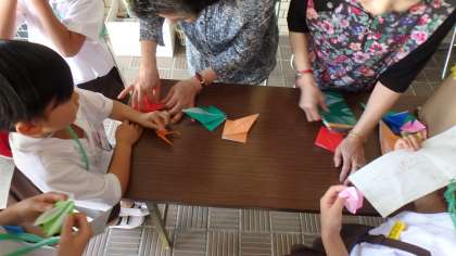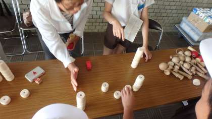 でんでんこどもまつり、地域の方のお店です。折り紙にお手玉、だるま落としにけん玉、そしてどうも大人に大人気のコマ回しです。地域のみなさまありがとうございます。