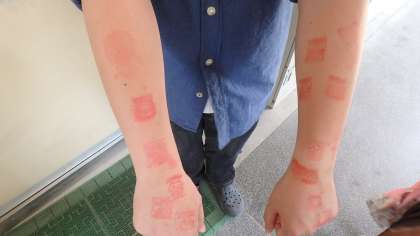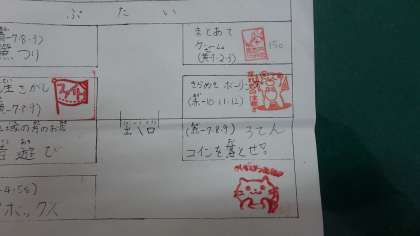 お店をめぐると、お店番の人がスタンプを押してくれます。スタンプ用紙をもたない先生は、、、