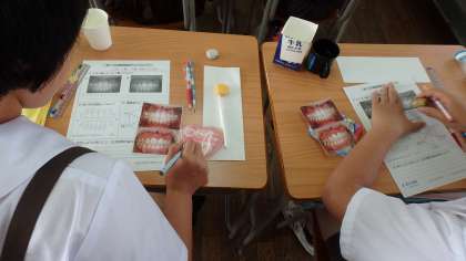 6月20日(火)、6年生では今日、歯と口の健康教室が開かれました。教育委員会から歯科衛生士さん、また伝法小学校の歯科校医先生に来ていただいて、授業をしていただきました。歯こう、歯ぐきなどのチェックや健康のために必要なことを学びました。最後には、伝法小学校のみなさんは歯の手入れがよくできています。とほめられました。とてもうれしかったです。