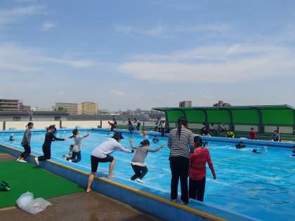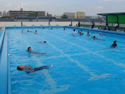 6日、お昼からの5時間目、六年生は着衣泳を体験しました。いつもの水泳授業の時間より、「重い」「動きにくい」「泳ぎにくい」、、。体験したくはないですが、もしもの時に、あわてないで、できるだけ水に浮き救助を待つ方法を学びました。