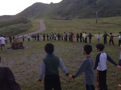 5年生のみんな、キャンプファイヤーでテンションMAXです。