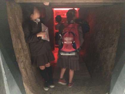 防空壕を体験したり、1トン爆弾のレプリカに触れたり、戦時中の暮らしに触れたりしました。