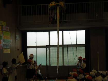 くす玉がなんとかわれてよかった ちょっと見えにくいかな でんでん
