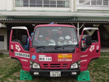 伝法小学校のグラウンドにパッカー車が来ました!パッカー車のヒミツ、いろいろ学ぶことができました。大阪市環境局のみなさま、ありがとうございました!