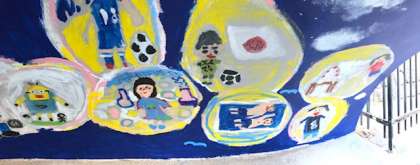 夏休みが終わりに近づく8月19日に「PTA夏休み親子レクレーション大会」が行われました。今年度は阪神電車高架下、校外グラウンドと学校とを結ぶトンネルに子どもたちが思い思いに将来の夢を描き、思い出を作りました。