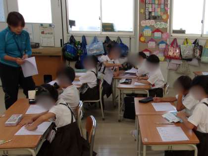1年生は国語科でカタカナ「ラ」「リ」の学習をしました。名称の中に「ら」や「り」が使われているものを探して発表することができました。その後、ワークシートを使って練習をしていました。