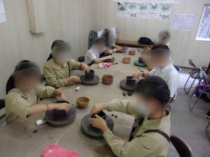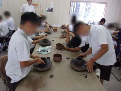 陶芸体験の様子です。形を整えるのは大変ですが、それを含めて自分だけのオリジナル作品ですね。