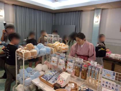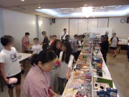 お待ちかねのお土産タイムです。ホテルの特設会場で伝法小学校だけの買い物タイムです。どれにしようか、みんな迷っています。それも楽しいひと時です。