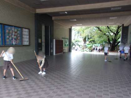 その後、伝法クリーンピックということで、全校児童で校内と近隣の清掃活動を行いました。どの学年の子どもたちも前向きに取り組む姿が印象的でした。