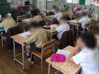 5年生は算数科「分数のたし算とひき算」のまとめのテストをしました。問題をよく読んで、学習したことを思い出しながら取り組んでいました