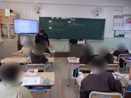 4年生は、算数の学習でした。さまざまな四角形を平行な辺が「2組」、「1組」、「なし」のいずれかに分類し、台形や平行四辺形の特徴を理解しました。