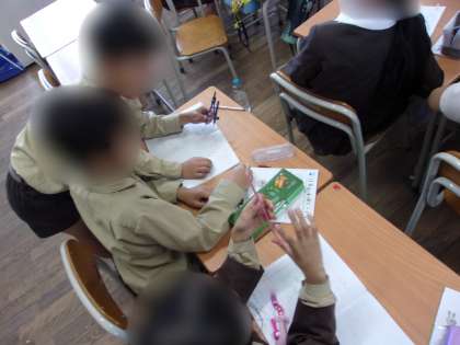 3年生は、算数でコンパスの使い方の学習を行いました。コンパスを実際に使って、半径5センチメートルの円をノートに描きました。