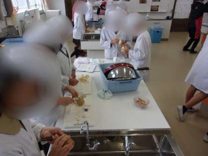 6年生は、家庭科の調理実習でジャーマンポテトを作りました。班のメンバーで作業を分担し、協力して美味しいジャーマンポテトを完成させました。