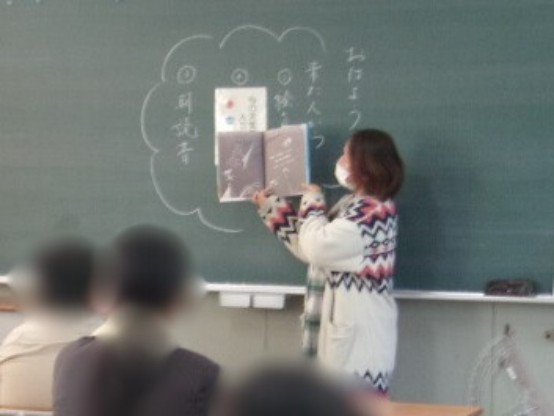 今日の朝は、読書ボランティアの方が来て、1・2・6年生の子どもたちに読み聞かせをしてくれました。