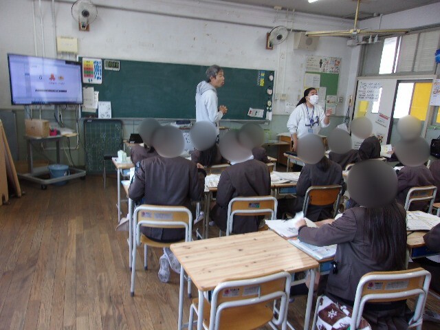 5年生は、外国語の学習でした。アルファベットを一文字選び、そのアルファベットが頭文字となる単語を教科書を参考にしながら、みんなで答えていきました。