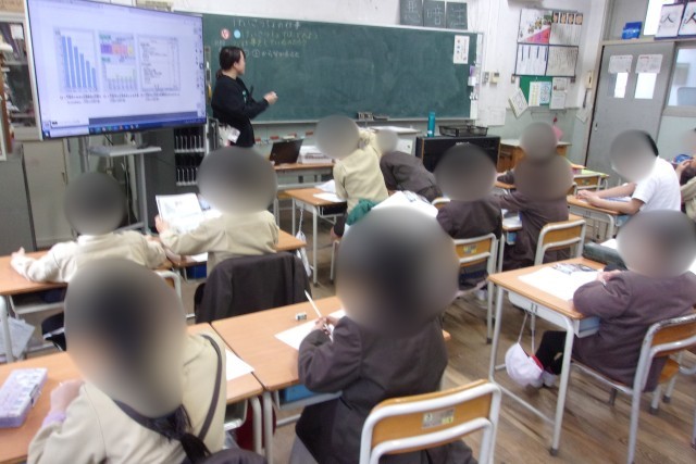 3年生は、社会科で警察署の仕事について学習しています。交通事故の発生件数等のグラフを見て、気づいたことやわかったことを出し合ったり、警察署が地域の安全を守るために果たしている役割について考えたりしました。