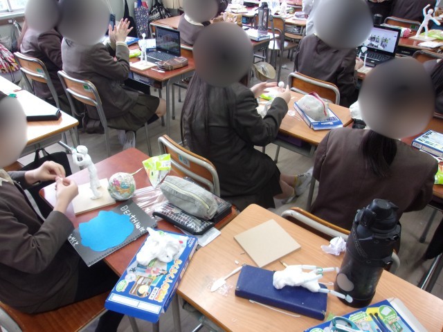 6年生は、図工でした。なりたいと思っている将来の自分を紙粘土を使って制作します。針金や芯材で骨組みを作り、ポーズを考えながら、紙粘土で肉付けしていきました。