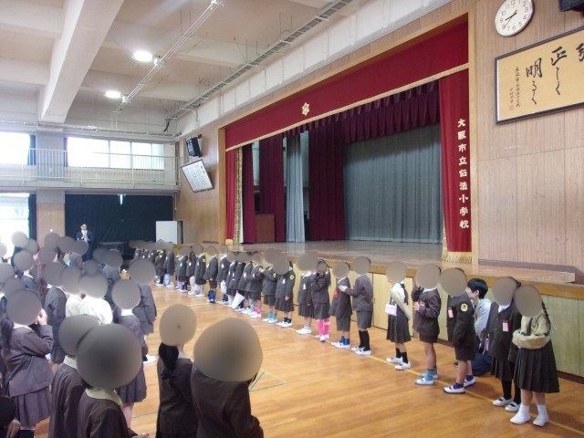 今朝は、1年生とその他の学年が初めて一緒に顔を合わせる対面式でした。拍手を受けて入場してきた1年生でしたが、たくさんのお兄さんやお姉さんの前に並んだときは、ちょっぴり緊張しているようでした。大丈夫ですよ。これからきっとお兄さんお姉さんたちが、いろいろなことを優しく教えてくれますよ。