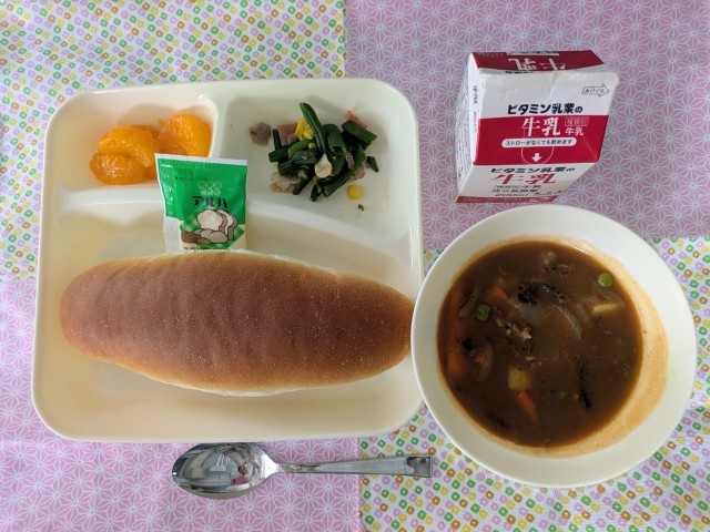 今日の給食は、1年生は初めてのパン献立でした。マーガリンを初めて食べるという人もいました。好きなものが多くなんでもおかわりをする人もいますが、苦手なものがある人もいます。苦手な食べ物は、少し頑張って食べてみましょう。健康な体をつくるために、少しずついろいろなものが食べられるようにしていきましょう。