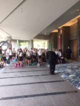 先ほど、6年生が修学旅行へ出発しました。 天気も良くて絶好の修学旅行日和になって...