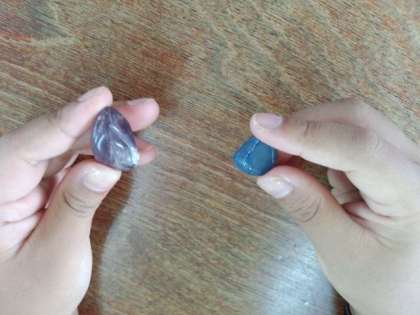 子ども達が手にしているツルツルピカピカの綺麗な石。