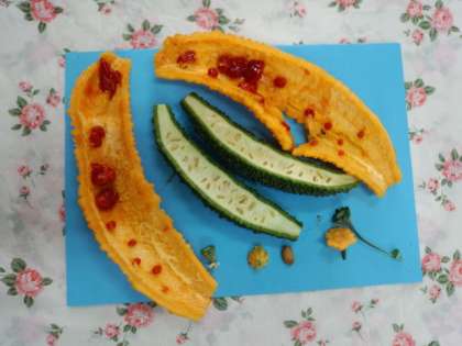緑のゴーヤとオレンジのゴーヤの解剖(?)にチャレンジ!!